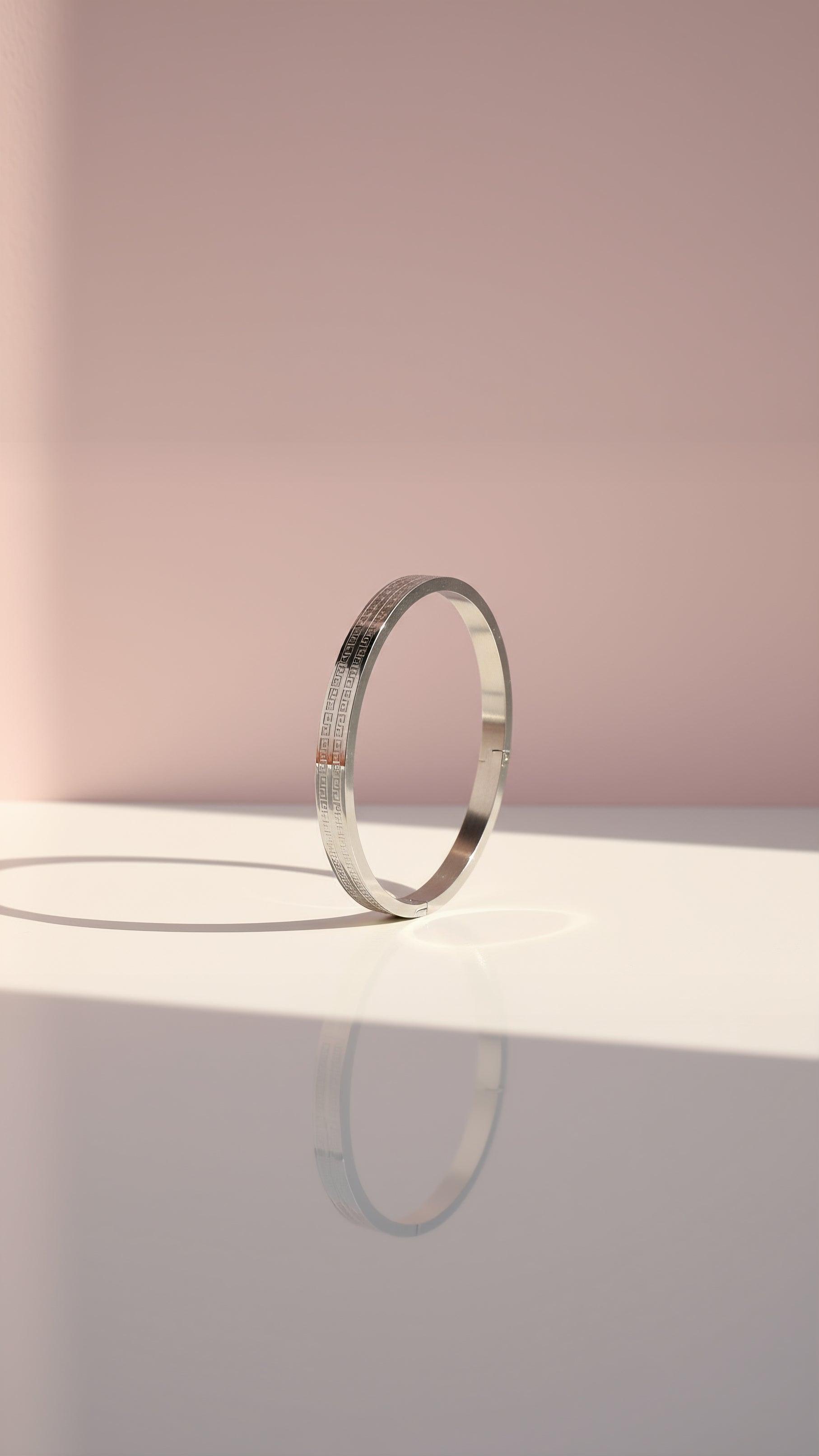 Stainless Steel Greek Key Silver Stacking Bangle