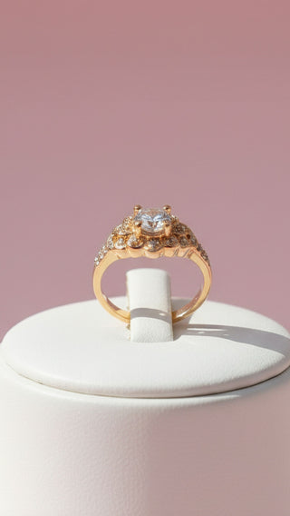 Gold Round Cut Solitaire Crystal Ring Gold Box set of 12