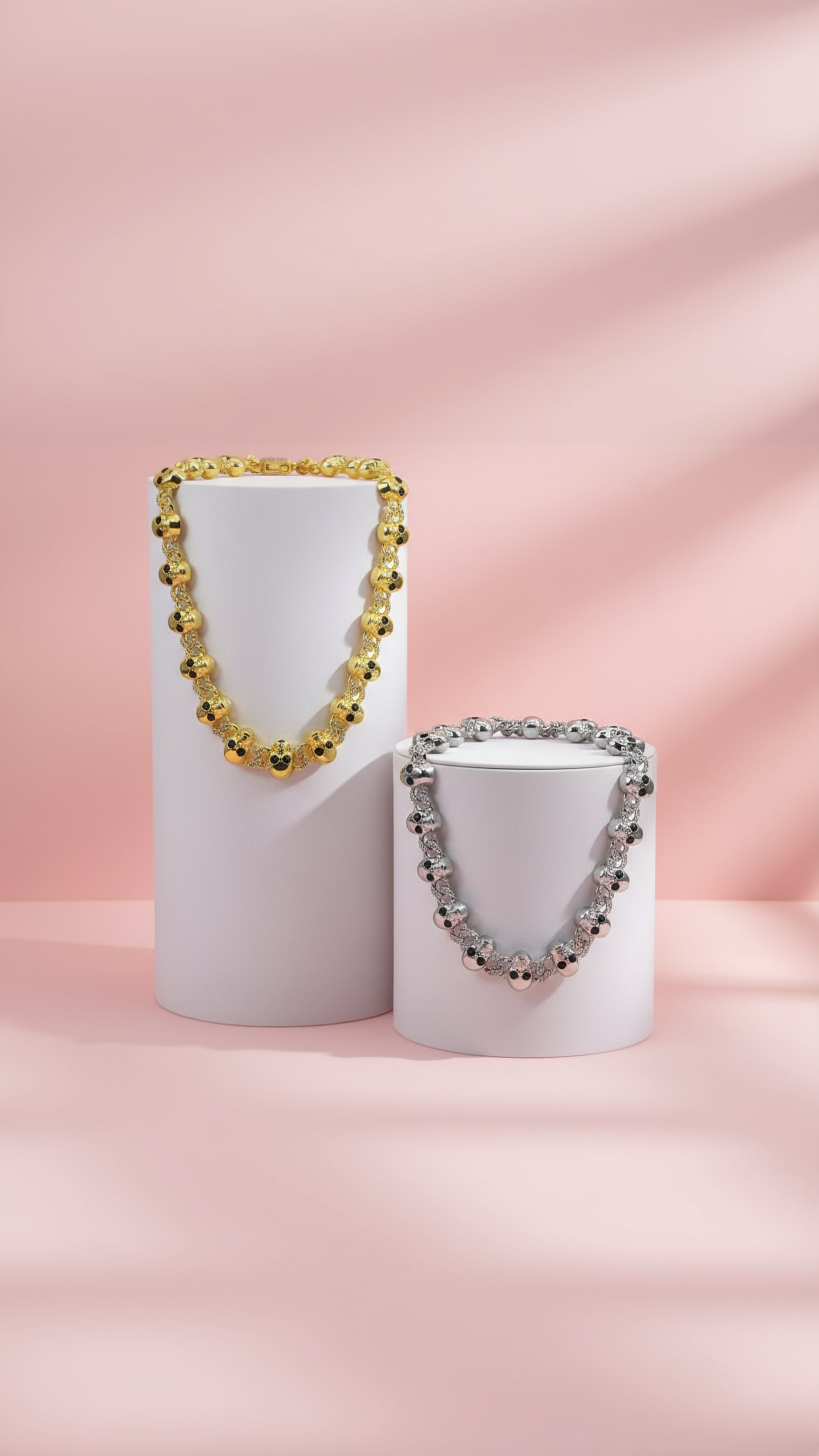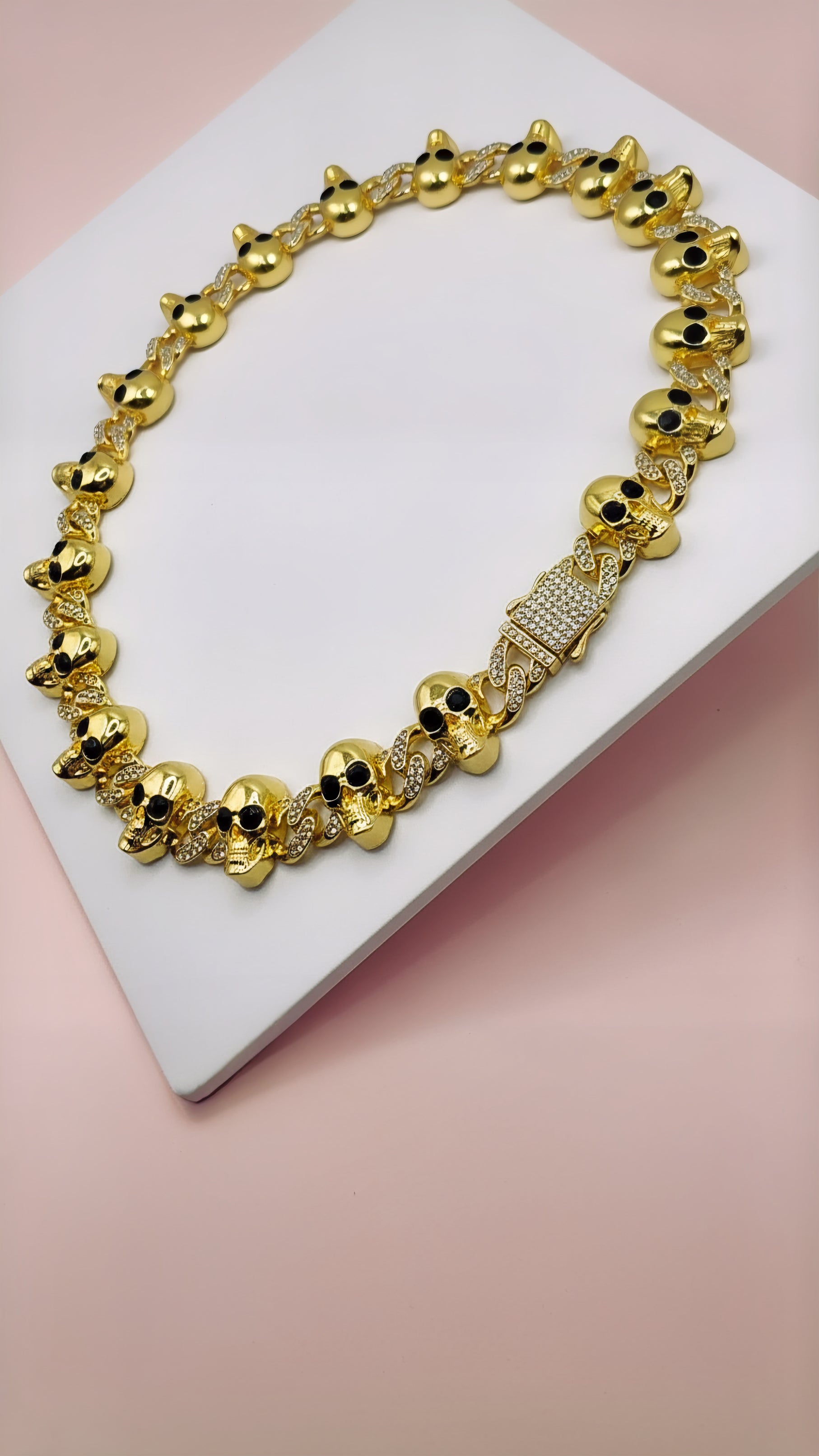 Add a touch of edgy charm with this Skull Link Crystal Clasp Necklace. Delicately designed with sparkling crystals and unique skull links, it’s perfect for adding a playful yet stylish detail to any outfit. Lightweight and comfortable, this bracelet makes a cute and pretty statement that’s both fun and edgy.