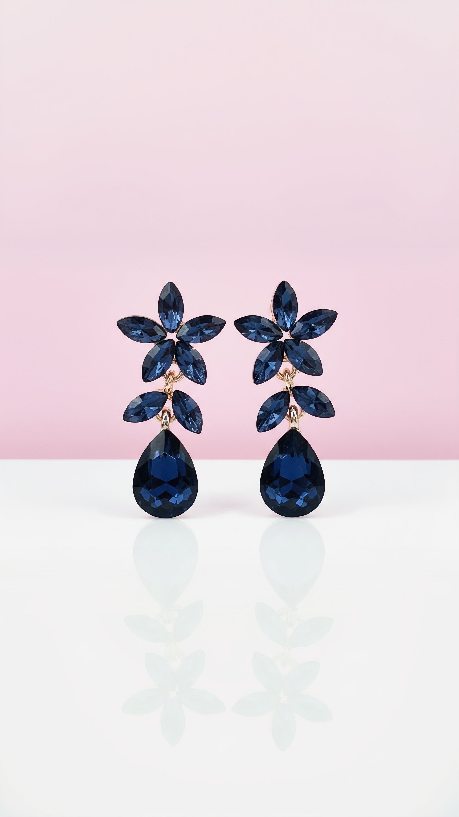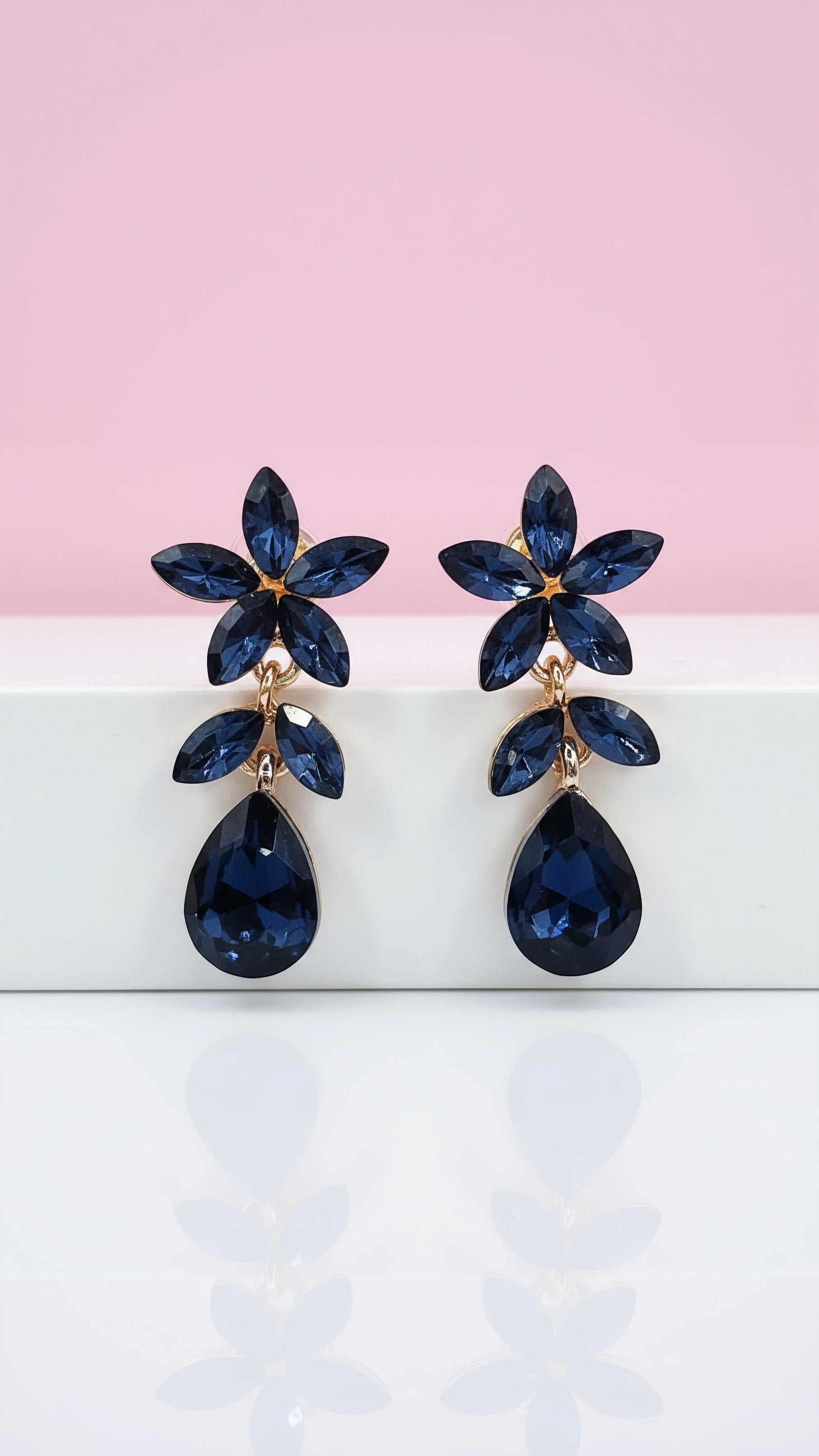 Navy Flower Crystal Drop and Dangle Earrings