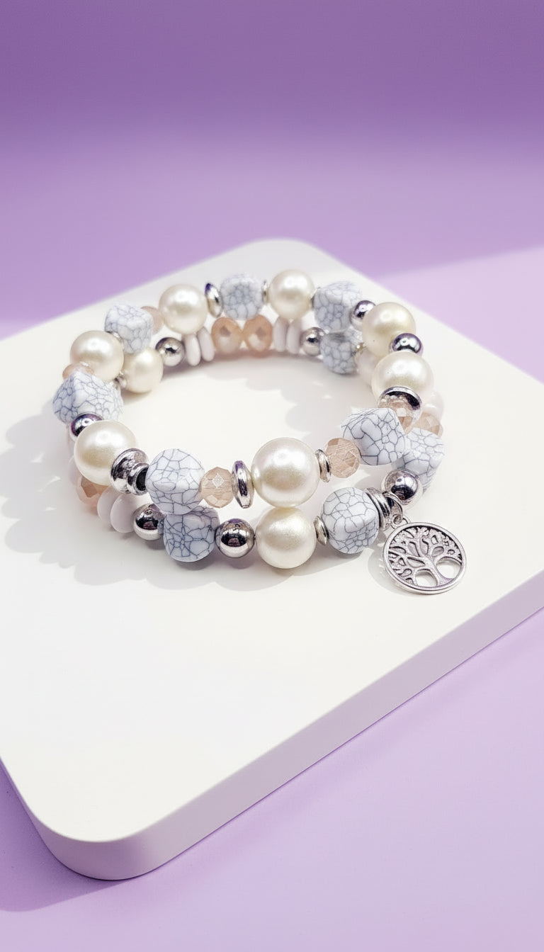 Mini Tree Of Life Double Charm Ceramic Beaded Bracelet Set