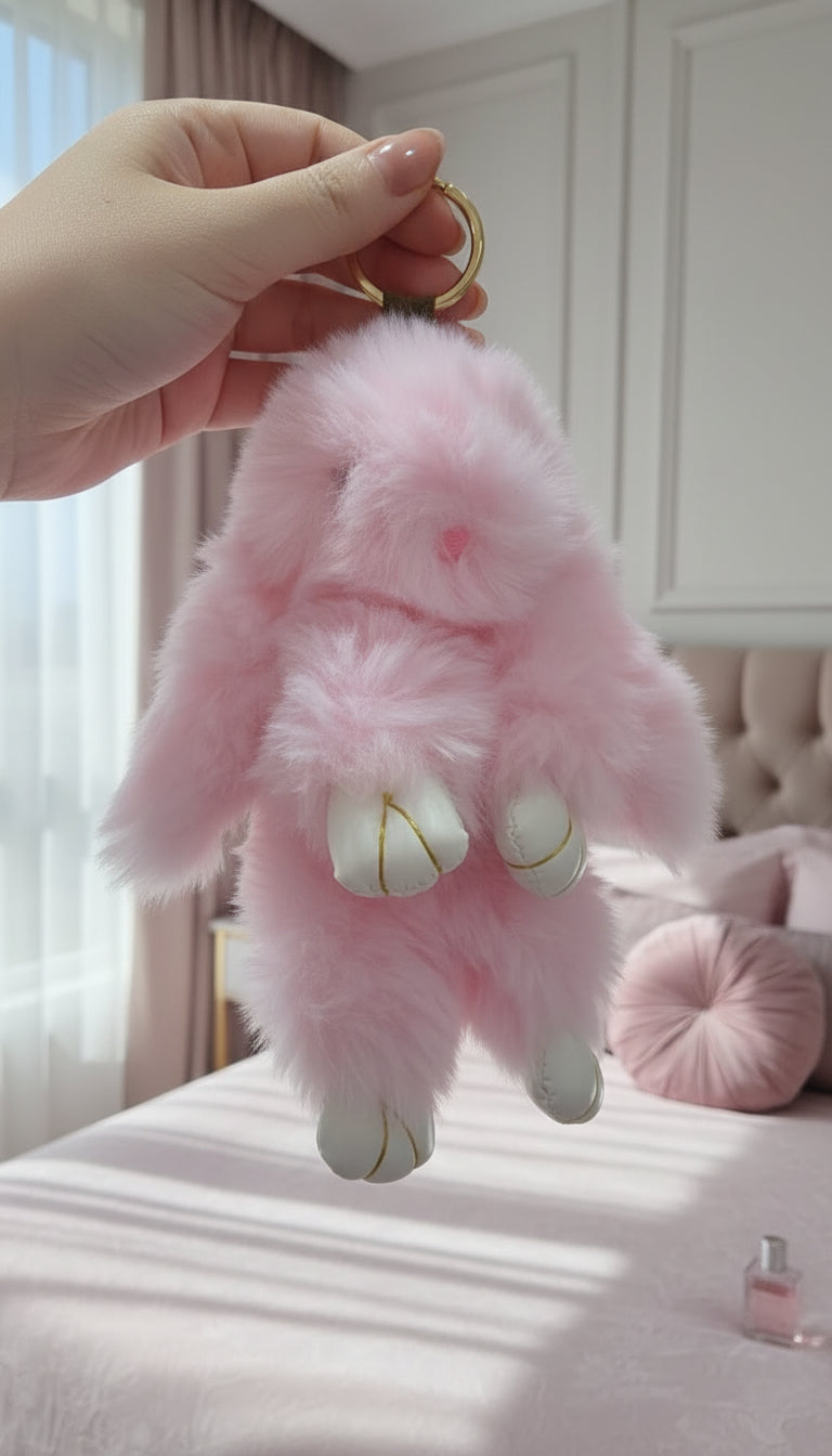 Plush Fluffy Bunny Rabbit Key Ring & Bag Charm