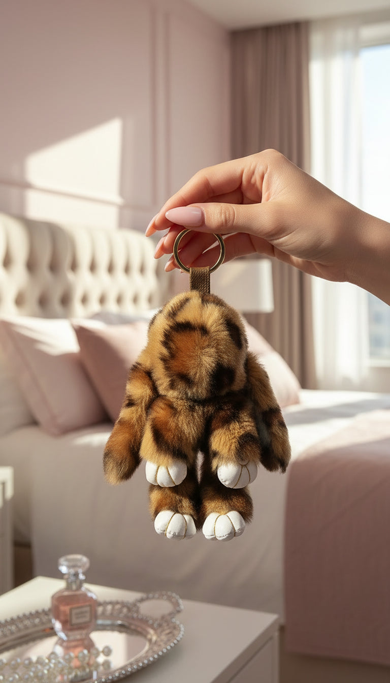 Plush Fluffy Leopard Print Bunny Rabbit Key Ring & Bag Charm
