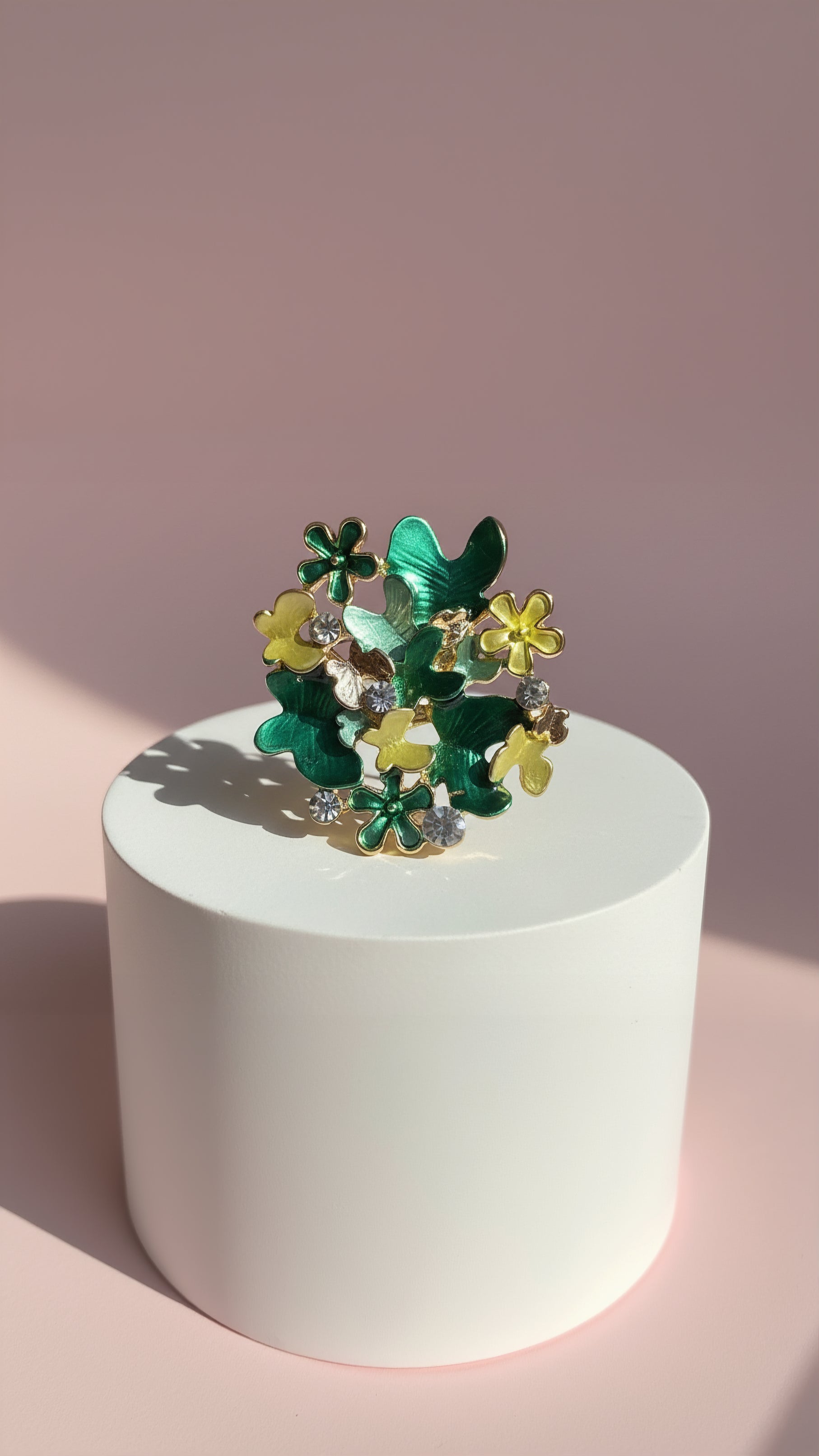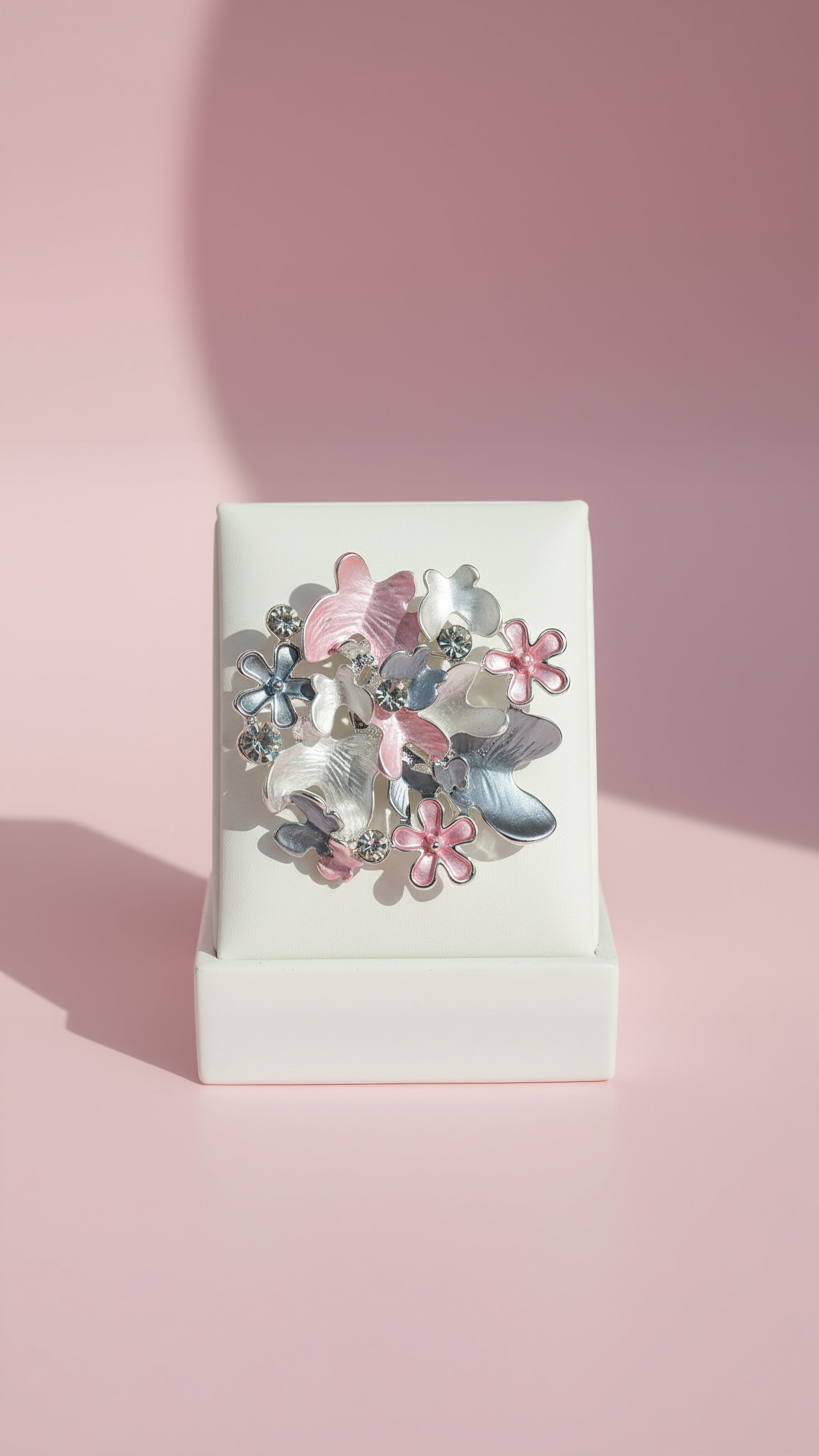 Butterfly With Flowers & Crystals Magnetic Brooch