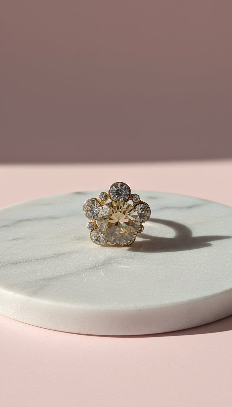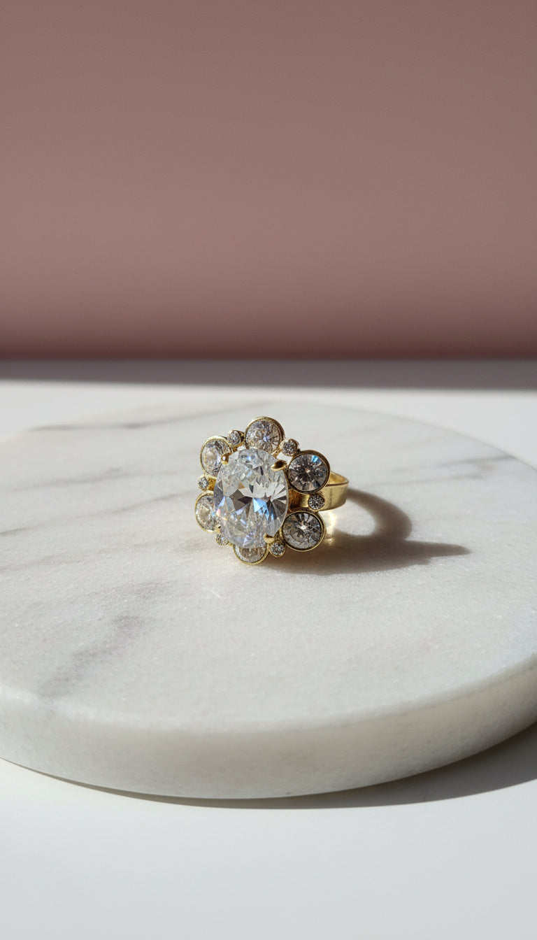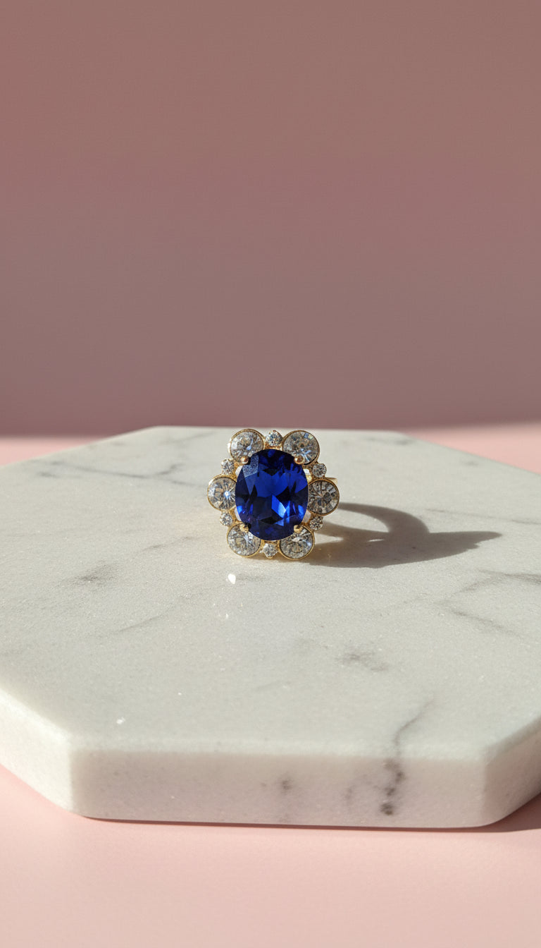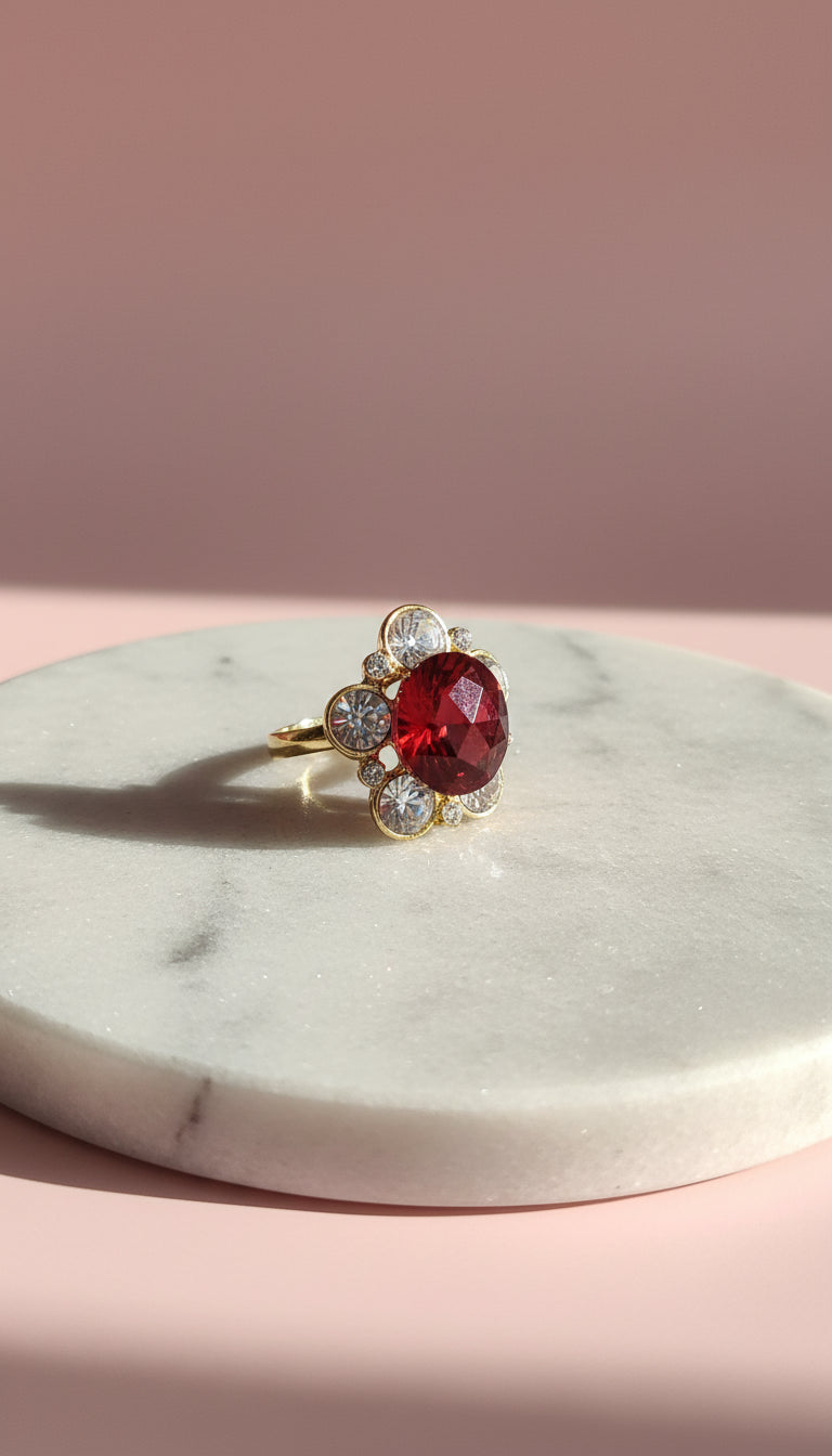 This ring featured a large color crystal and delicate crystals all around. It is a perfect addition to any collection of jewelry sets, with its sparkling appearance and is available in 6 different colors.