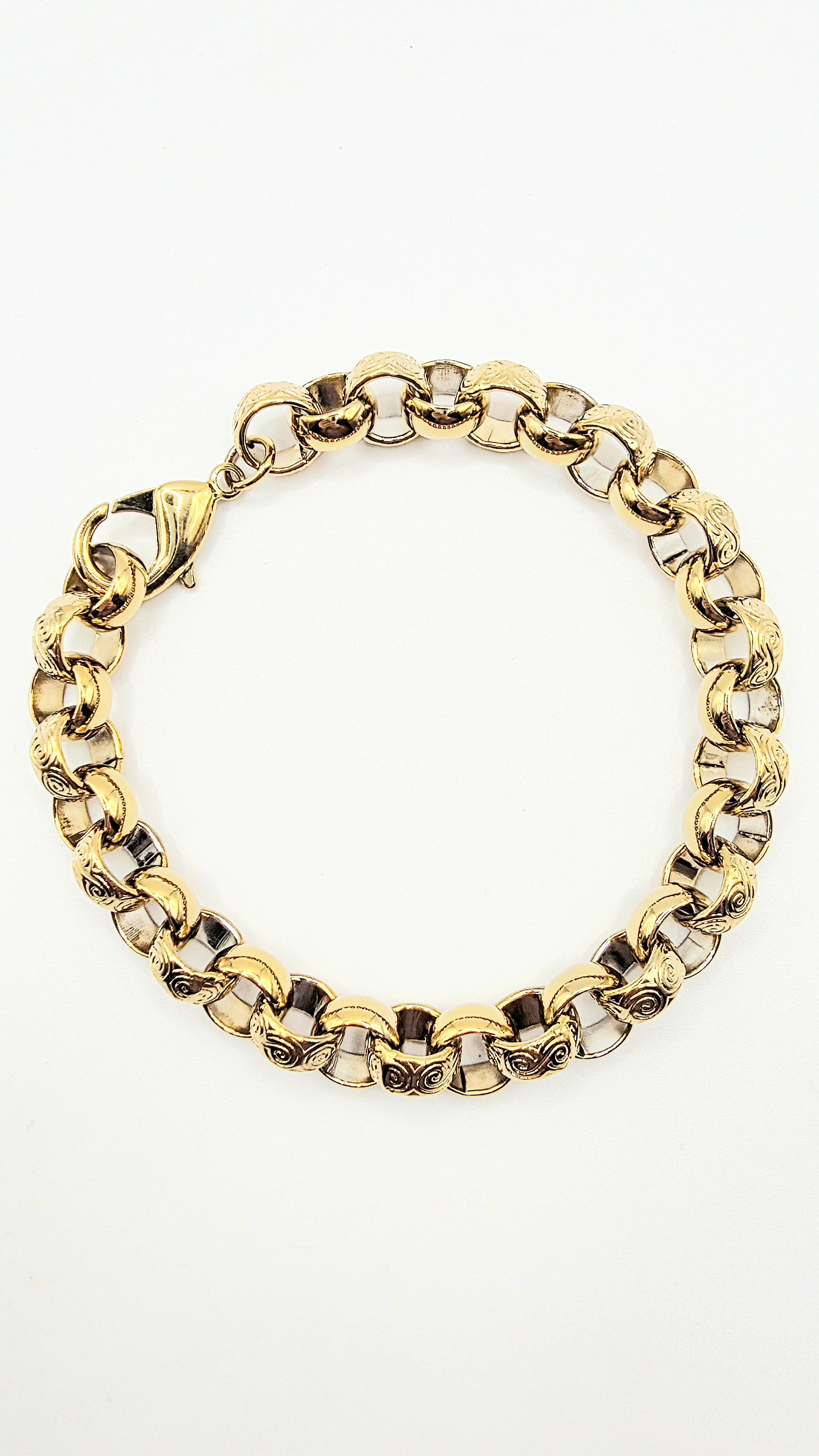 This Belcher Chain Bracelet is the perfect accessory for any stylish individual. Made with high-quality materials, this bracelet features a larger size for a comfortable fit. Enhance your look with this elegant and durable bracelet, sure to make a statement.