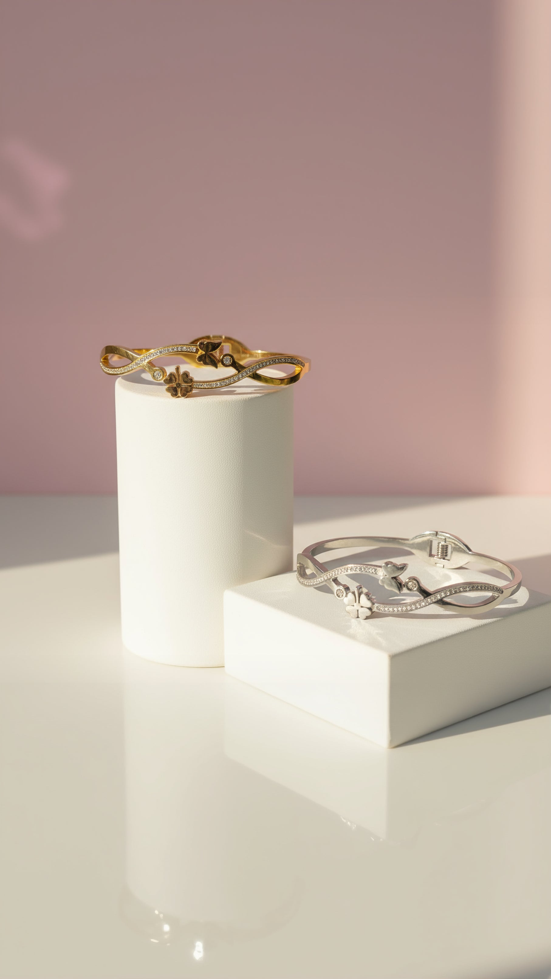 Butterfly & Clover Stainless Steel Bangle