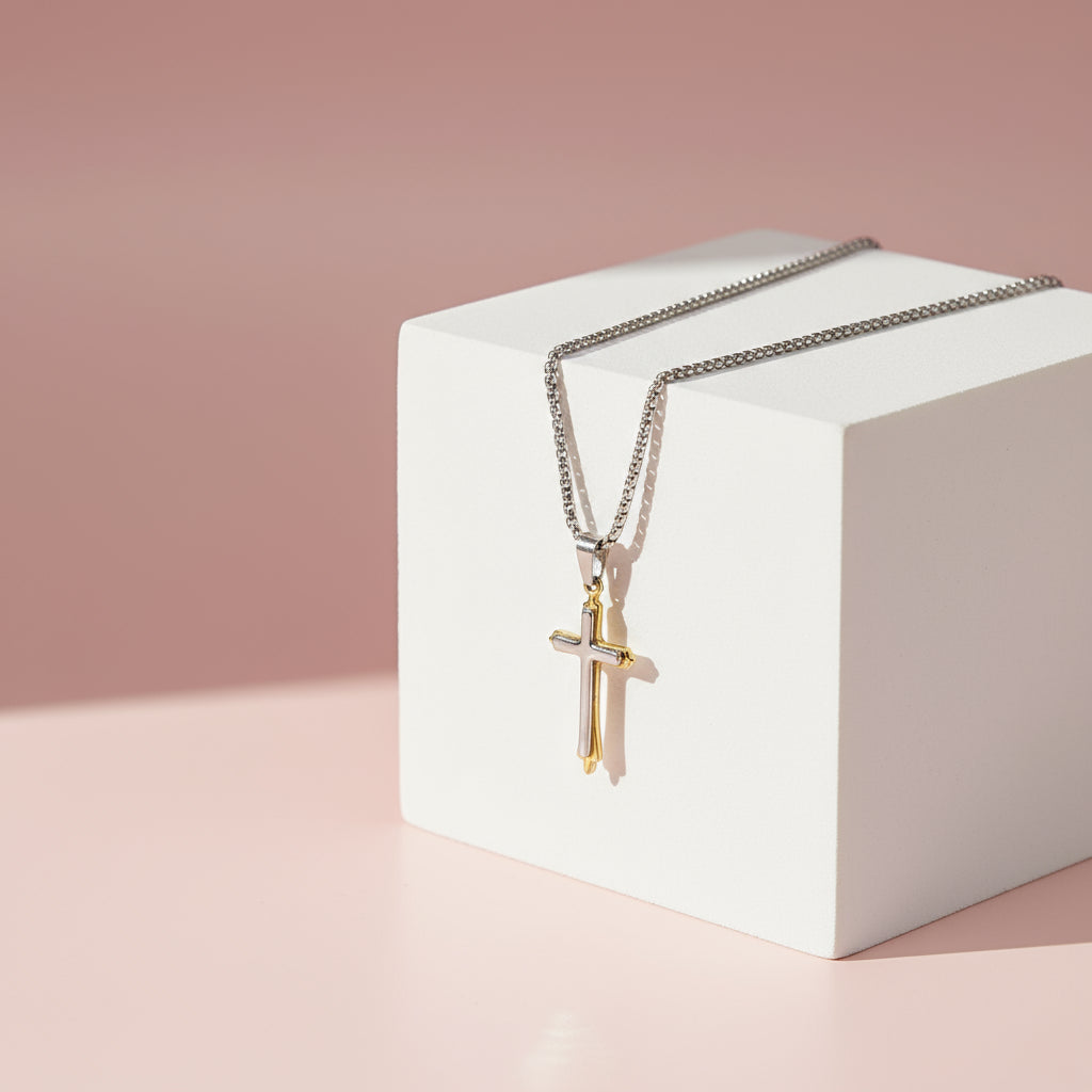 Two Tone Stainless Steel Cross Necklace