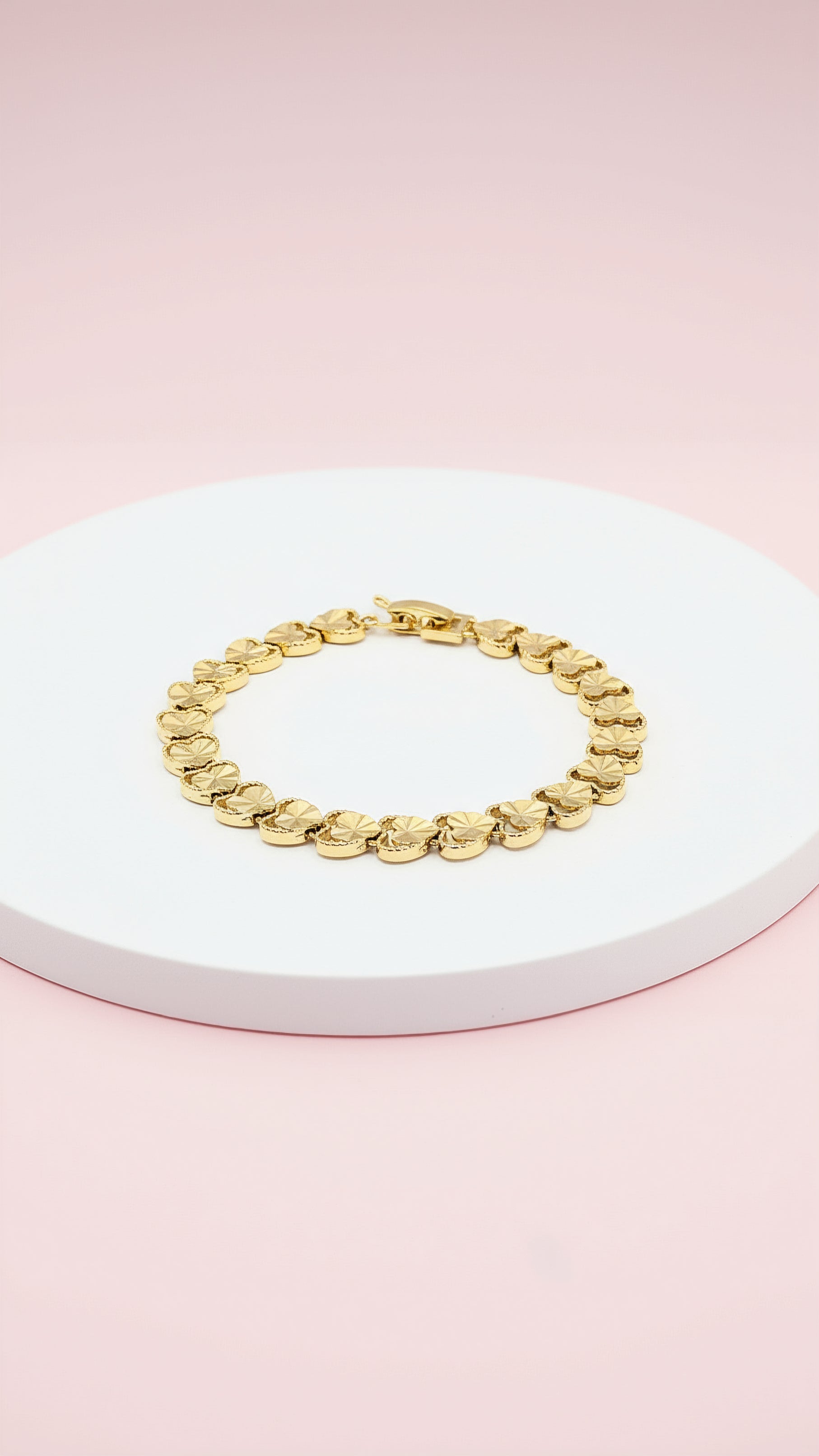 " 24k Gold Plated Shiny Heart Link Bracelet