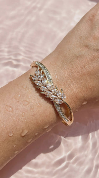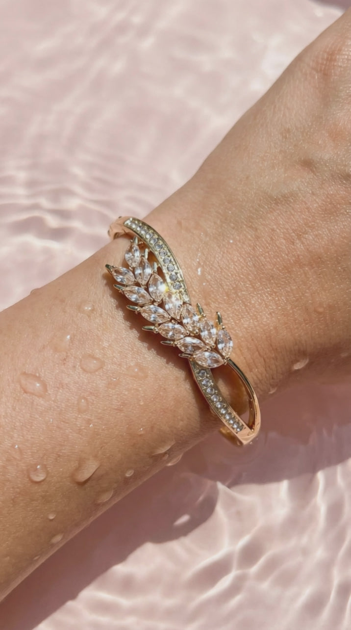 Curved Pave Crystal Inlaid Stainless Steel Gold Plated Hinged Bangle