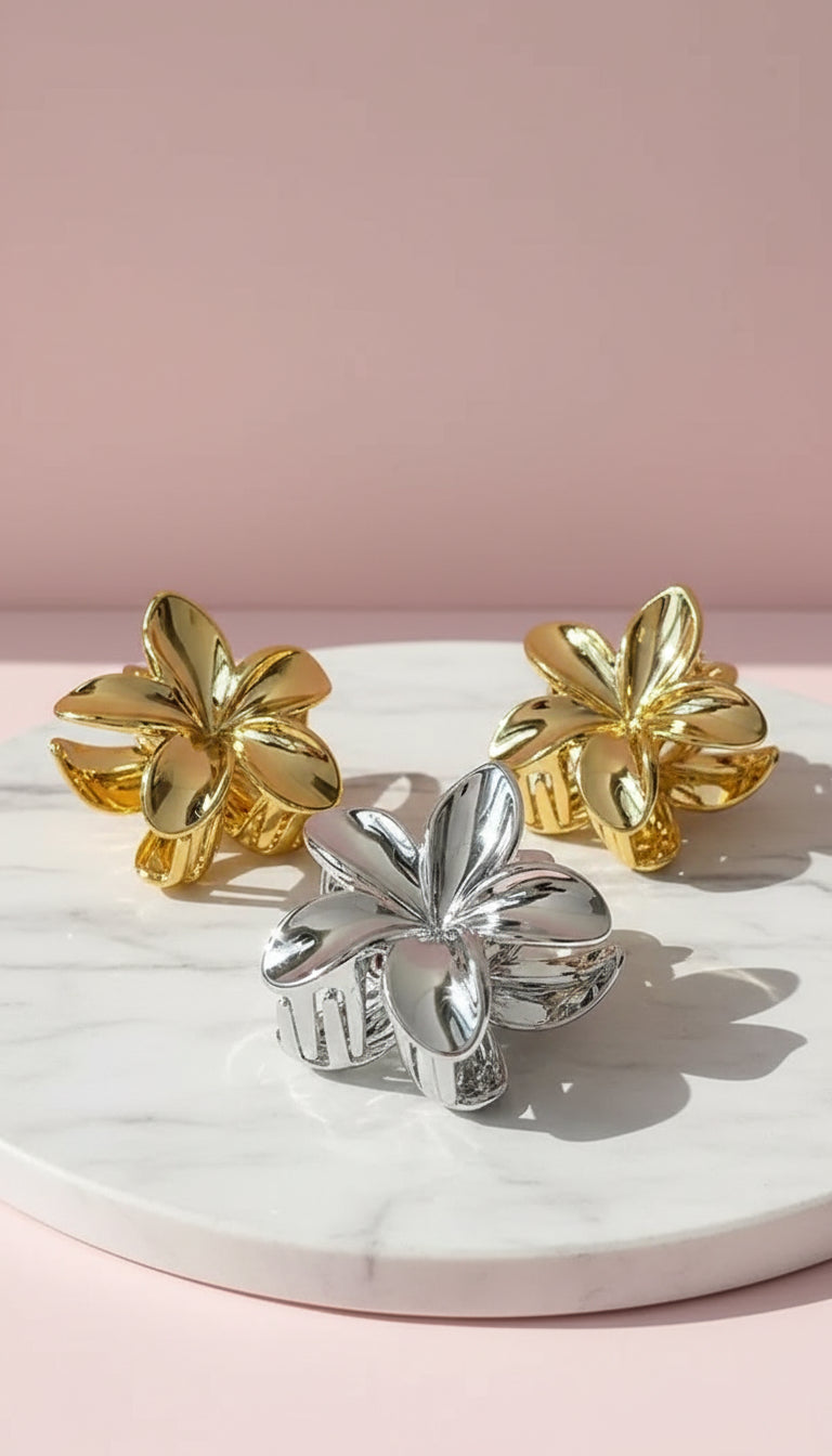 Metallic Flower Hair Clamps Pack of 12