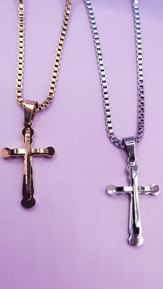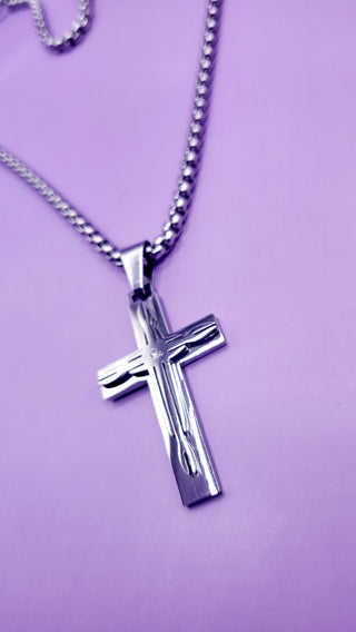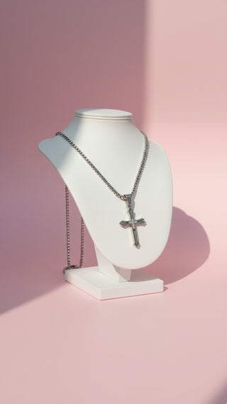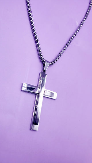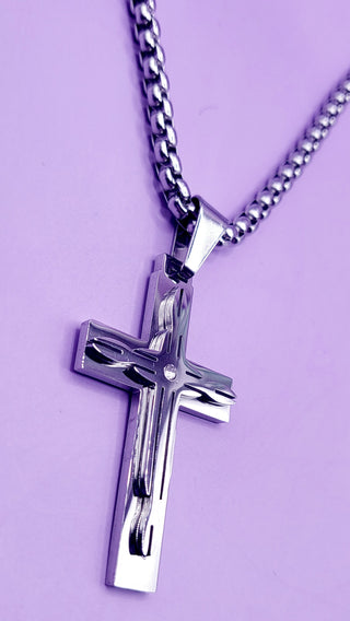 Polished Lattice Stainless Steel Cross Pendant Necklace