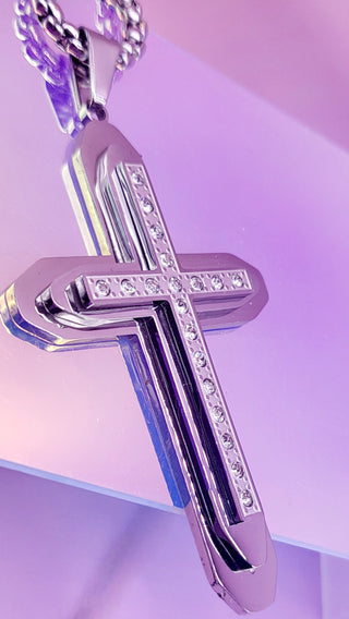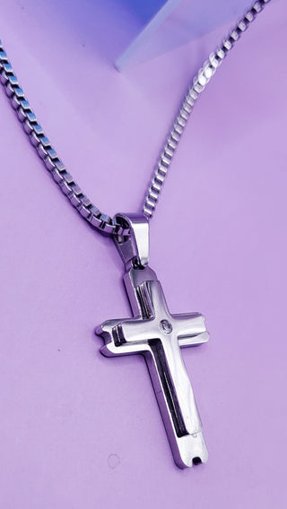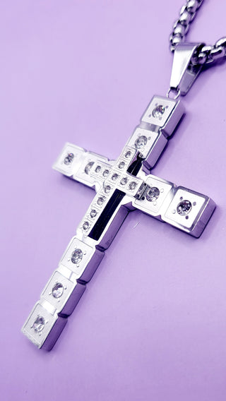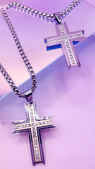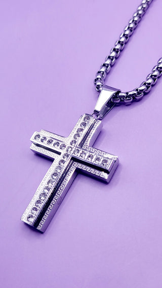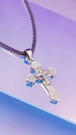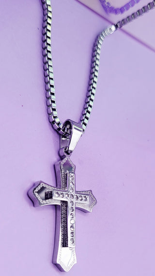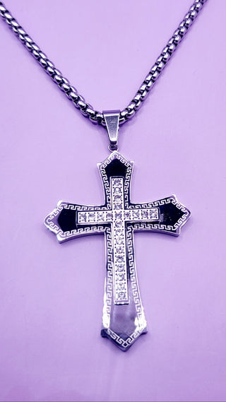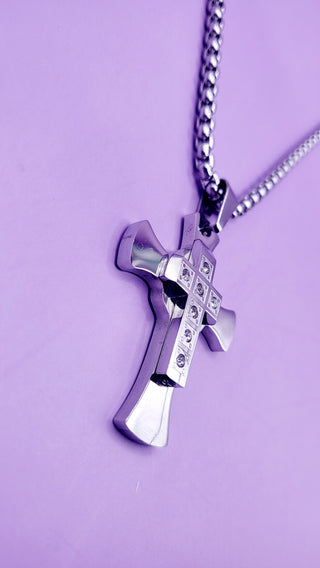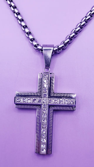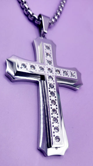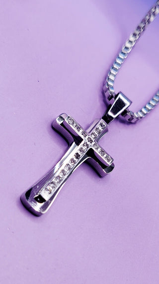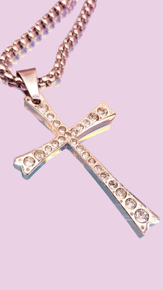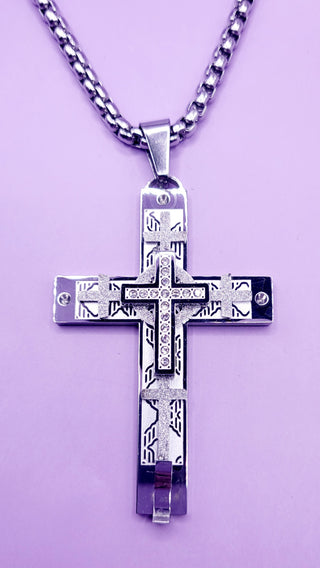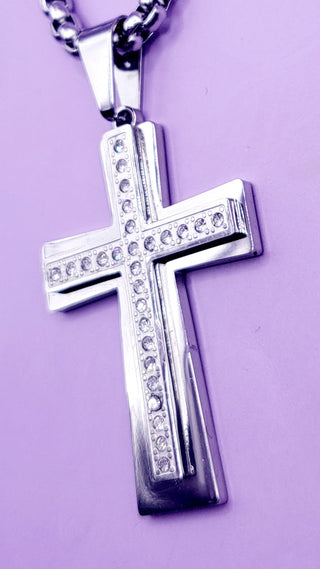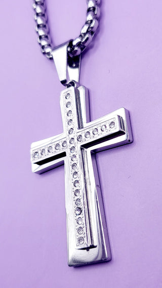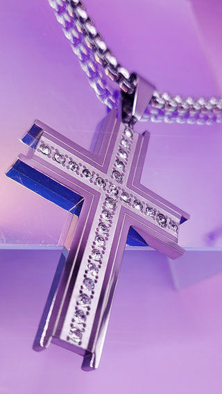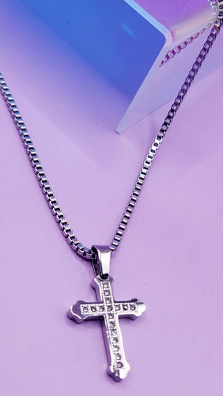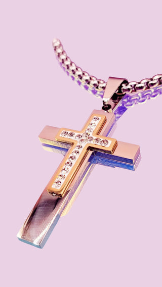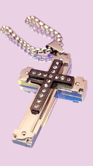 Crystal Inlaid Stainless Steel Symbolic Cross Necklace