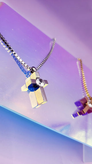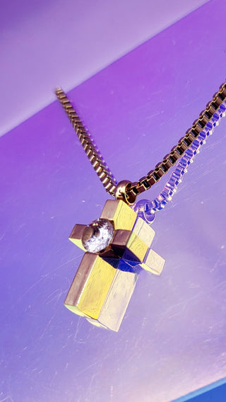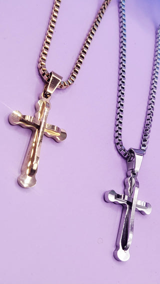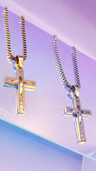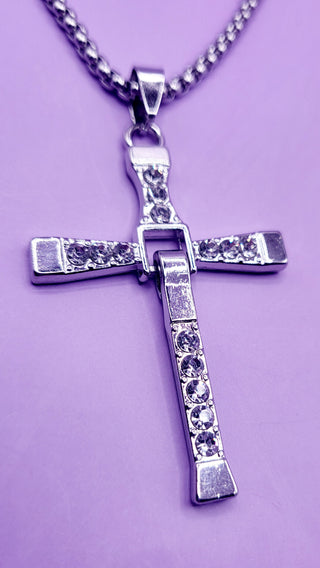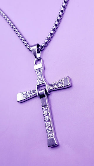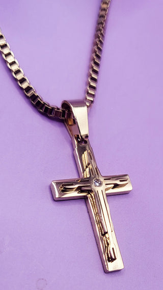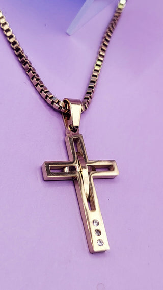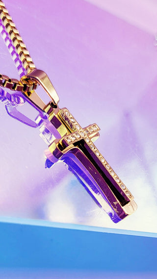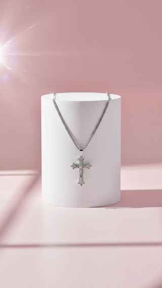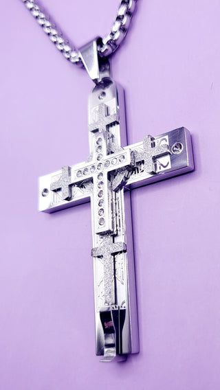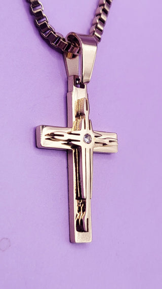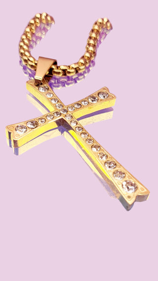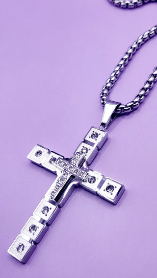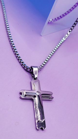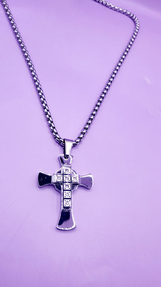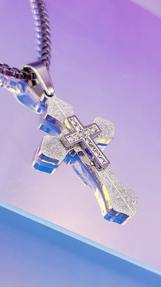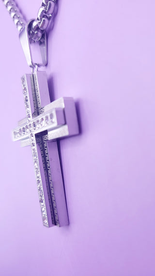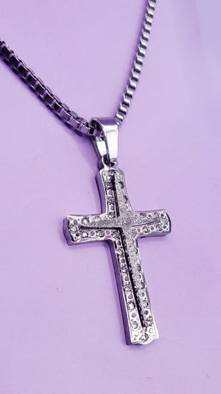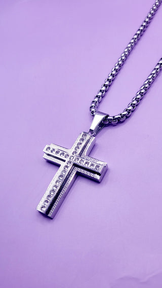 Crystal Inlaid Stainless Steel Symbolic Cross Necklace