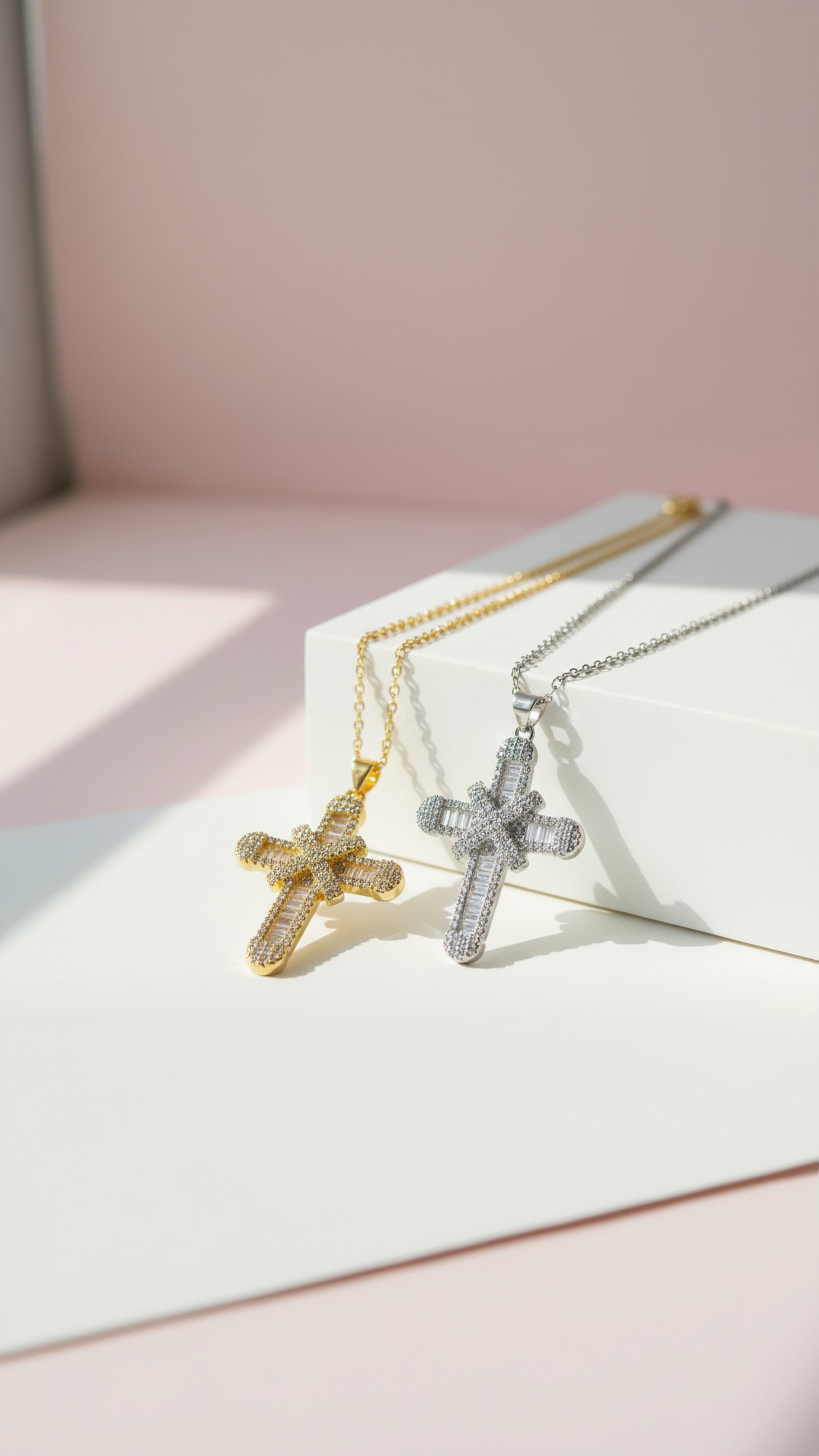 Add a timeless touch to your look with this beautiful cross necklace. Featuring a sleek design and subtle shine, it’s perfect for everyday wear or layering with your favourite pieces. A classic accessory that’s both stylish and meaningful—easy to pair with any outfit and designed to shine on every occasion