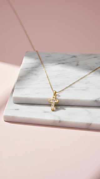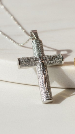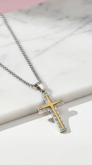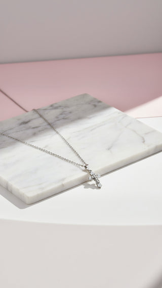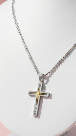 Crystal Inlaid Stainless Steel Symbolic Cross Necklace