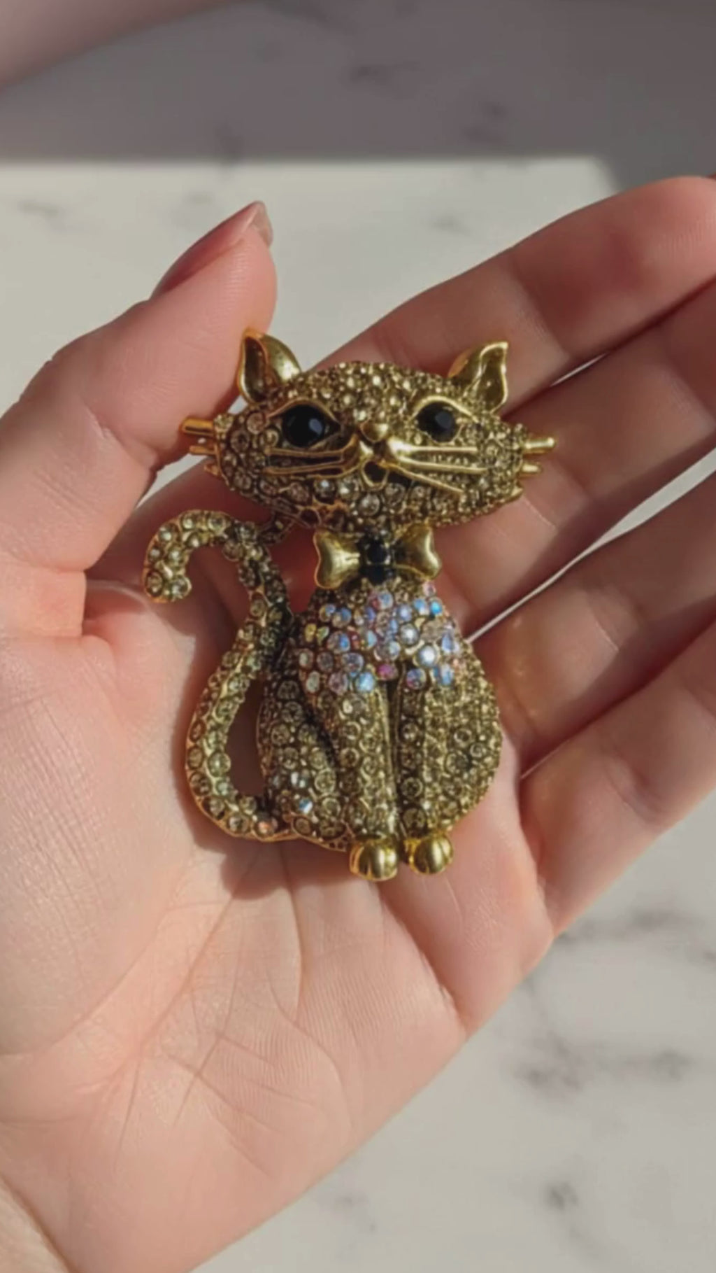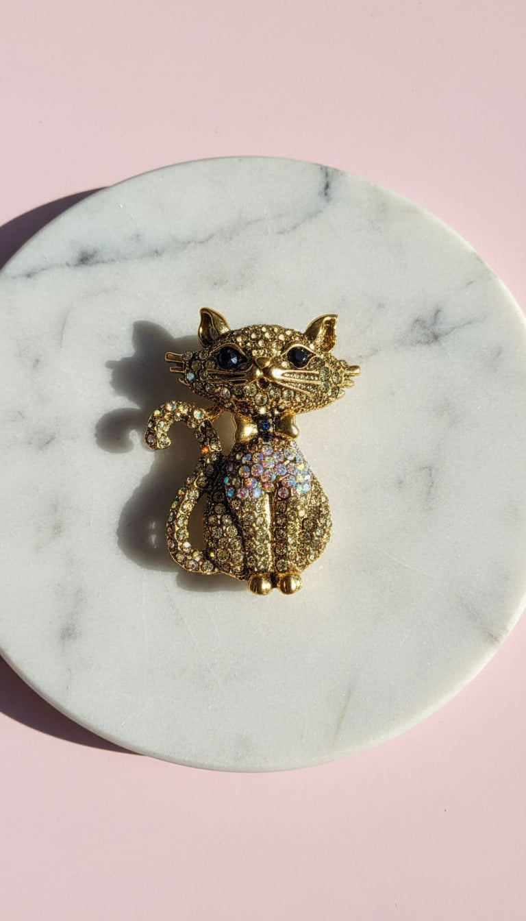 Crystal Cat With Bow Tie Pin Statement Brooch