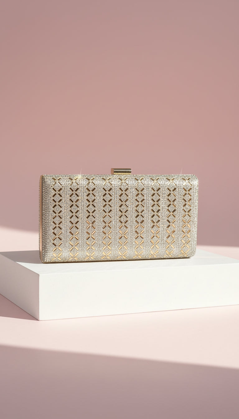 Add a touch of sparkle to your outfit with this Mirrored Crystal Clutch Bag. Its shimmering mirrored surface and delicate crystal accents make it the perfect accessory for special occasions or nights out. Compact yet stylish, it holds your essentials while adding a pretty charm to your look.