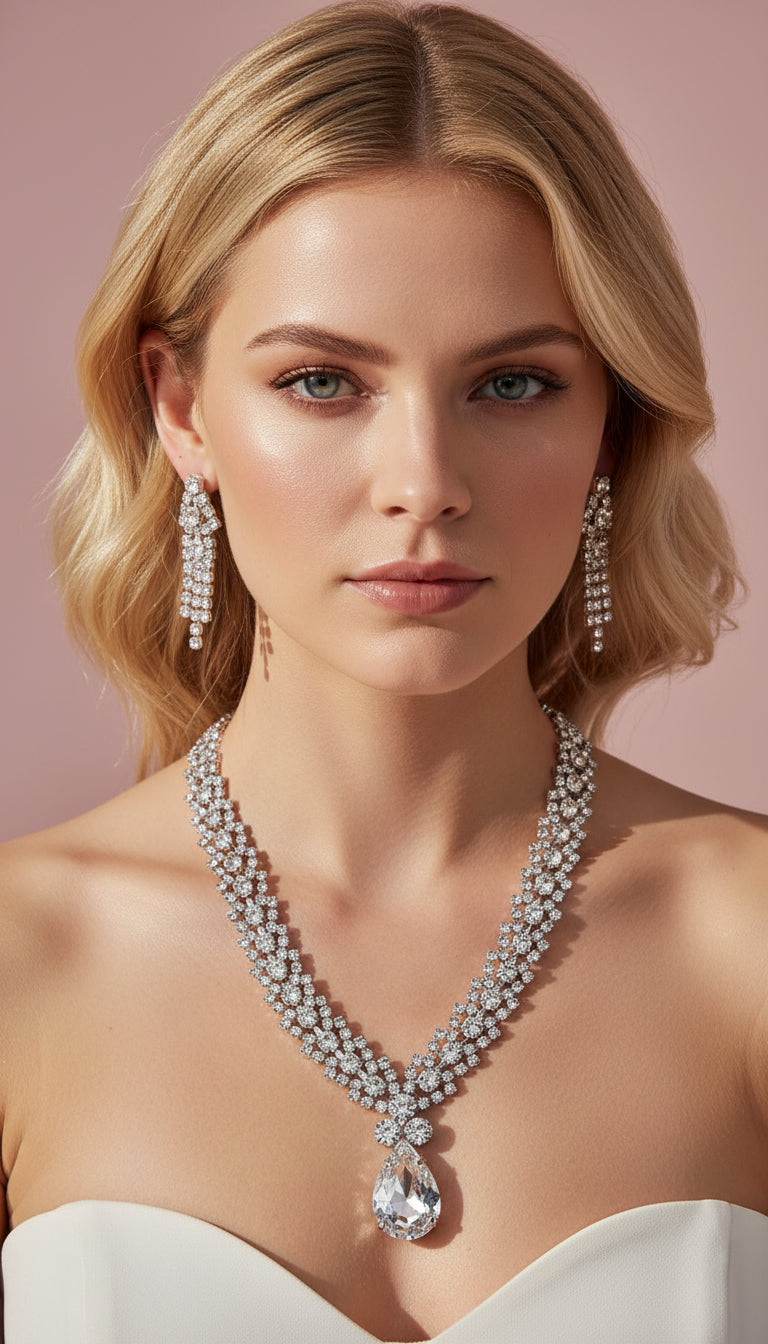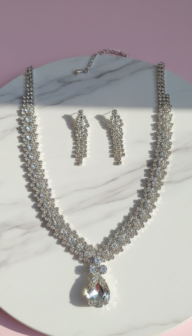 Teardrop Statement Crystal Necklace & Earrings Set
