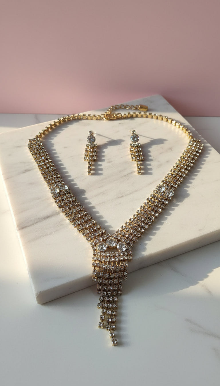 Tassel Statement Crystal Necklace & Earrings Set