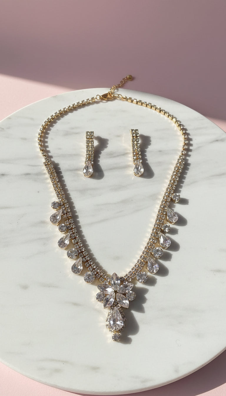 Starburst Cluster Statement Crystal Necklace & Earrings Set