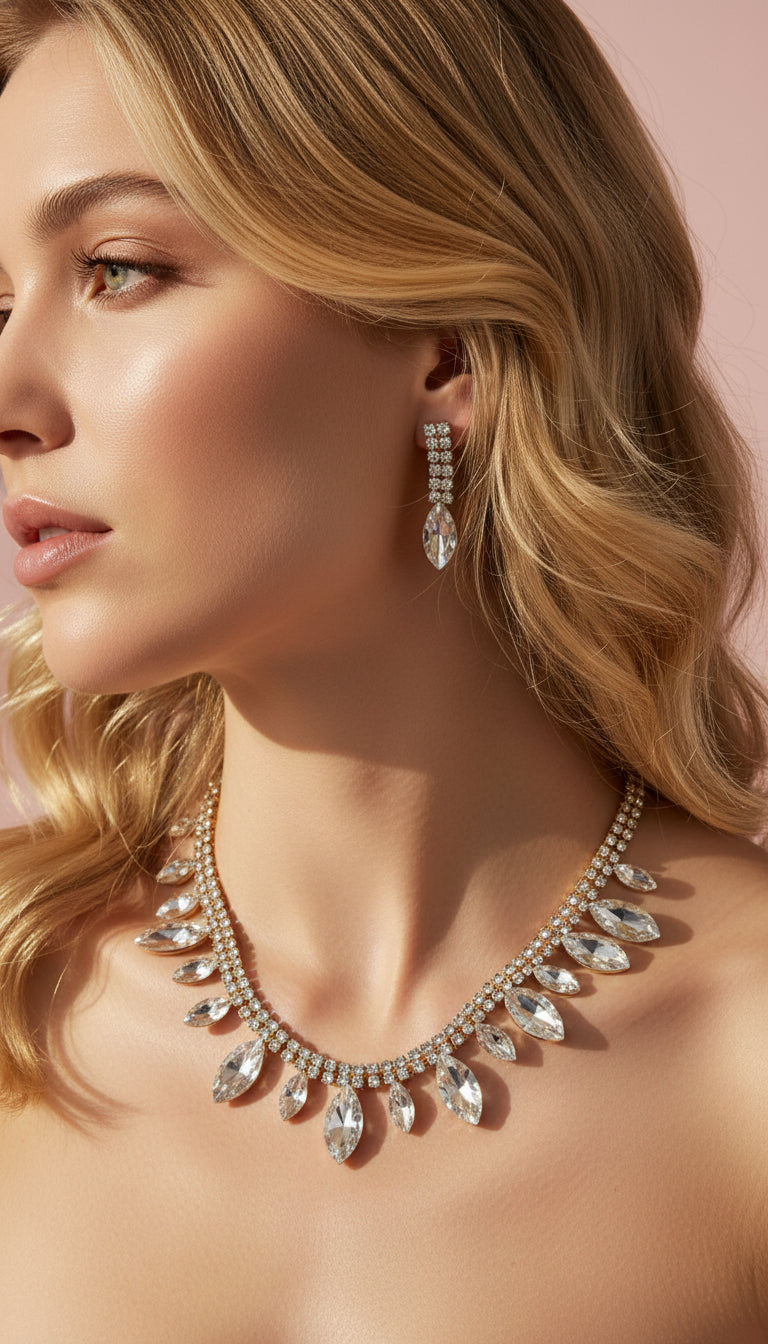 Hollywood Style Statement Crystal Necklace & Earrings Set
