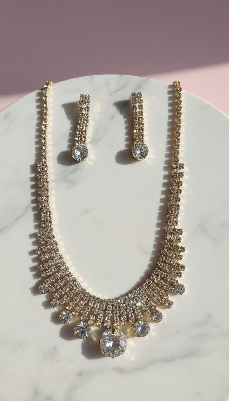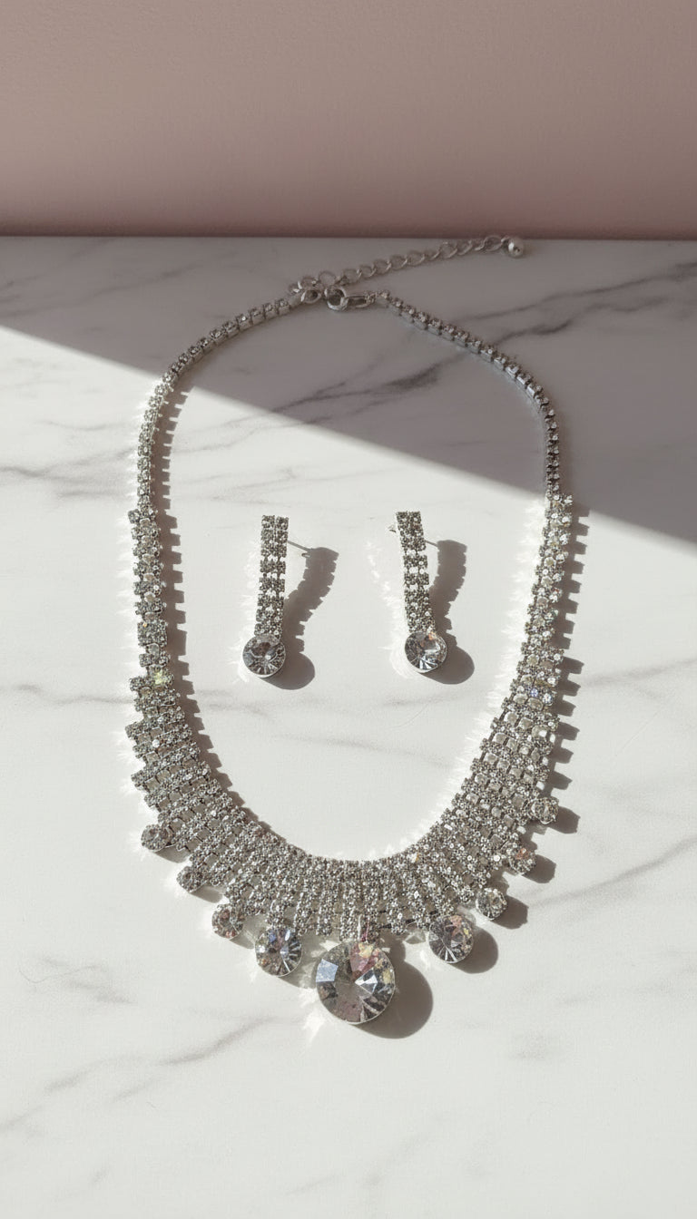 Round CZ Statement Crystal Necklace & Earrings Set