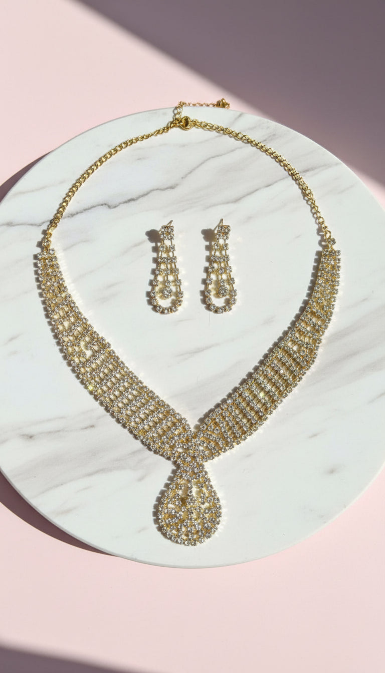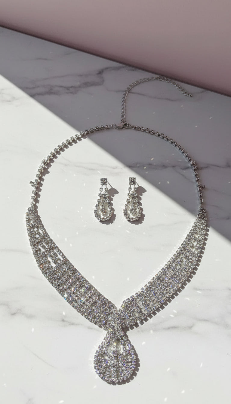 Teardrop Contour Crystal Statement Necklace & Earrings Set