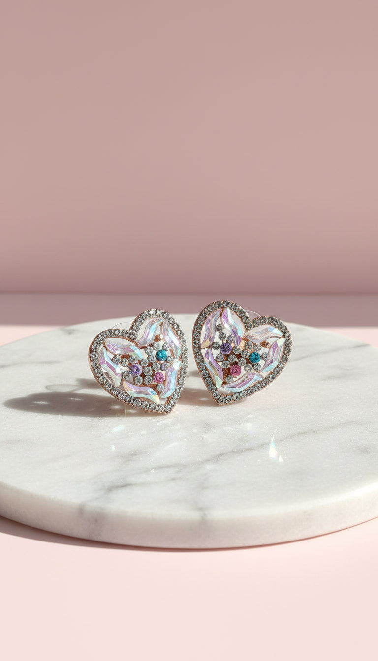 Rainbow Heart Iridescent Non Pierced Clip On Earrings
