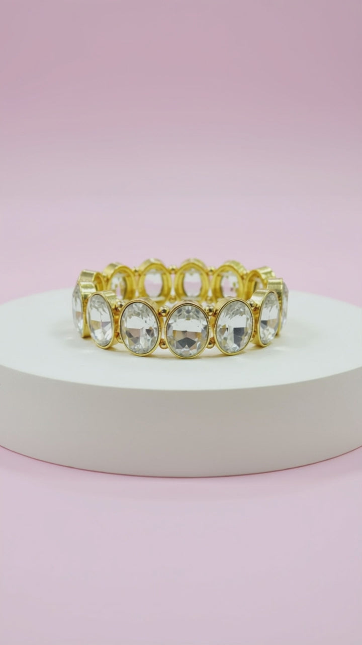 Oval Clear Crystal Gold Bracelet