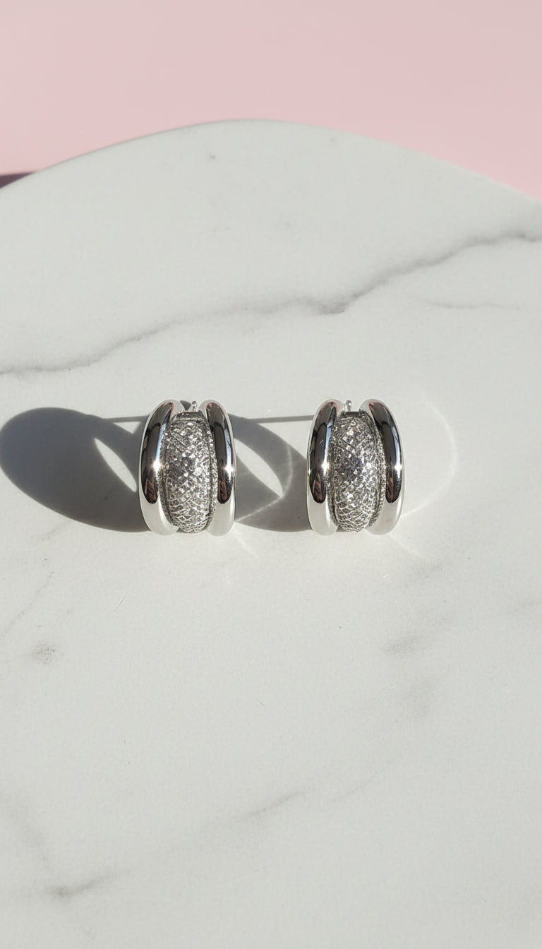 Add a pop of sparkle to your style with these crystal filled mesh hoop earrings—cute, chic, and effortlessly modern. They catch the light with every move and bring a playful shimmer to any look. Hypoallergenic and nickel-free for all-day comfort and shine. Your new go-to for everyday glam!