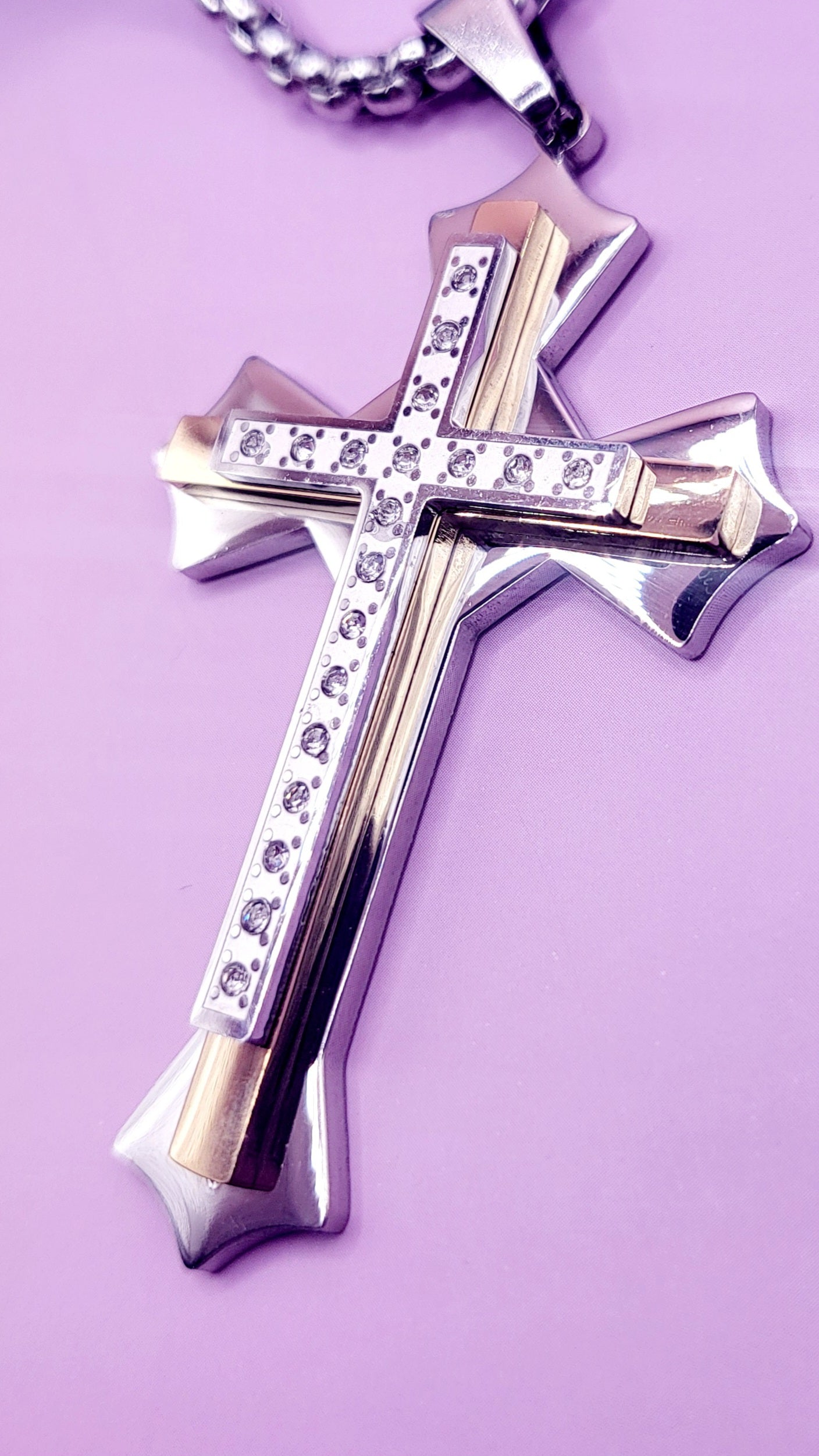 Two Tone Alloy Crystal Cross Necklace