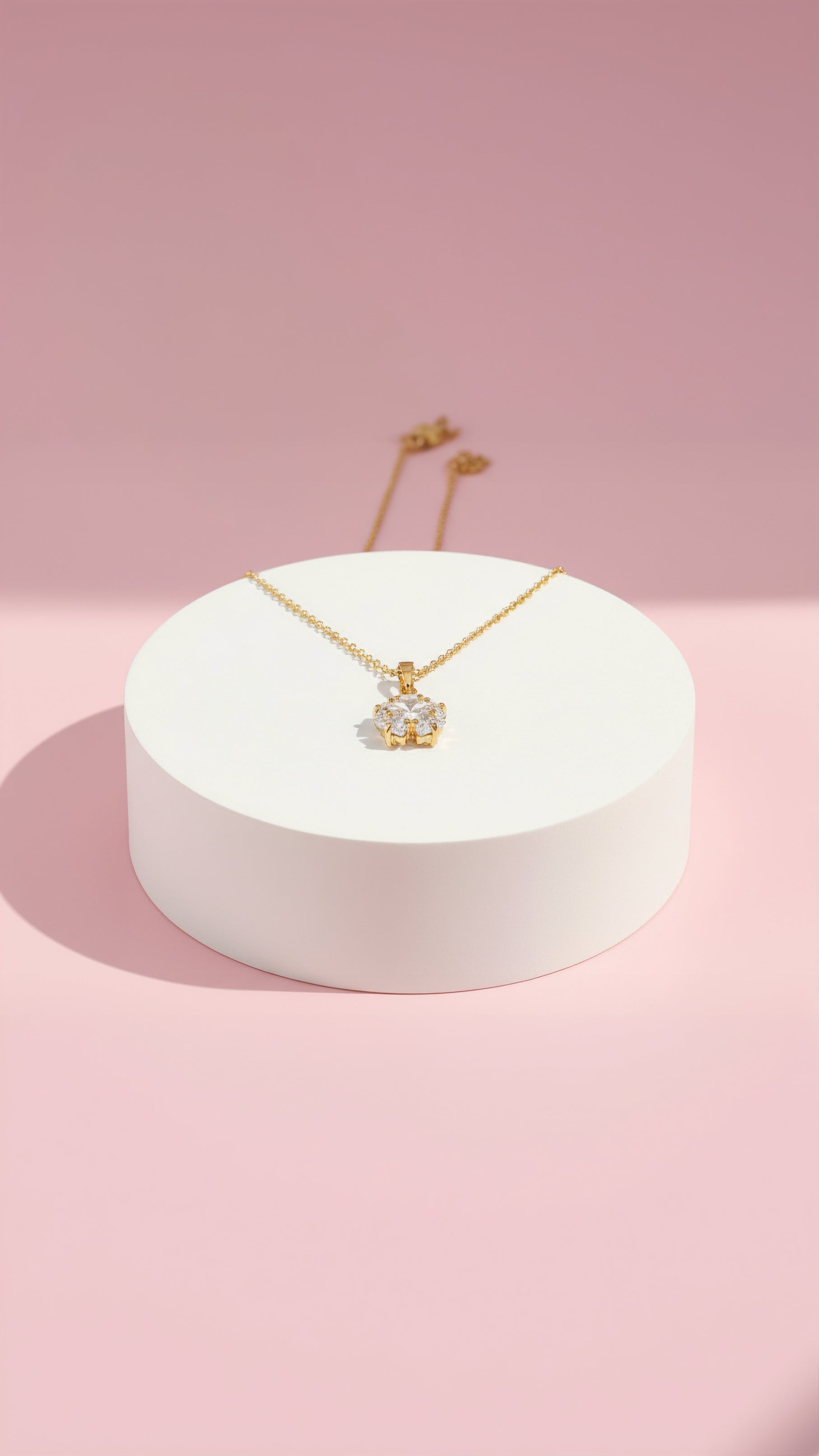 Add a little charm to your look with this lovely pendant! Featuring a delicate design and a touch of shine, it’s the perfect piece to dress up any outfit. Wear it solo for a simple statement or layer it with your favourite necklaces for your own unique style—cute, pretty, and perfect for every day.